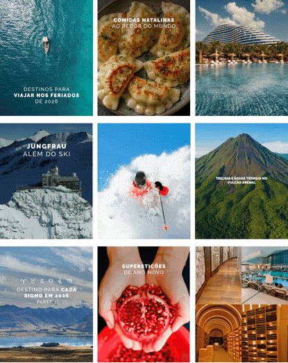 Desde destinos exóticos até experiências de viagem personalizadas, cada peça de é projetada para transportar os espectadores para sua próxima aventura e transmitir a emoção de viajar.