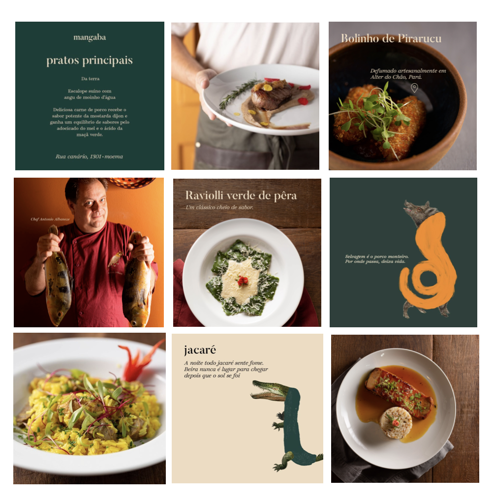 Desenvolvemos uma série de conteúdos que destacam a essência do Restaurante Mangaba, desde a origem dos ingredientes até o processo de preparação dos pratos. Cada postagem foi criada para mostrar o cuidado e a paixão que vão para cada refeição, capturando a autenticidade da experiência culinária.
